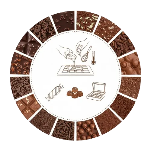 Visual inspection confirms glossy appearance and absence of fat bloom. Surface texture measurements indicate proper tempering completion with consistent finish across all samples.